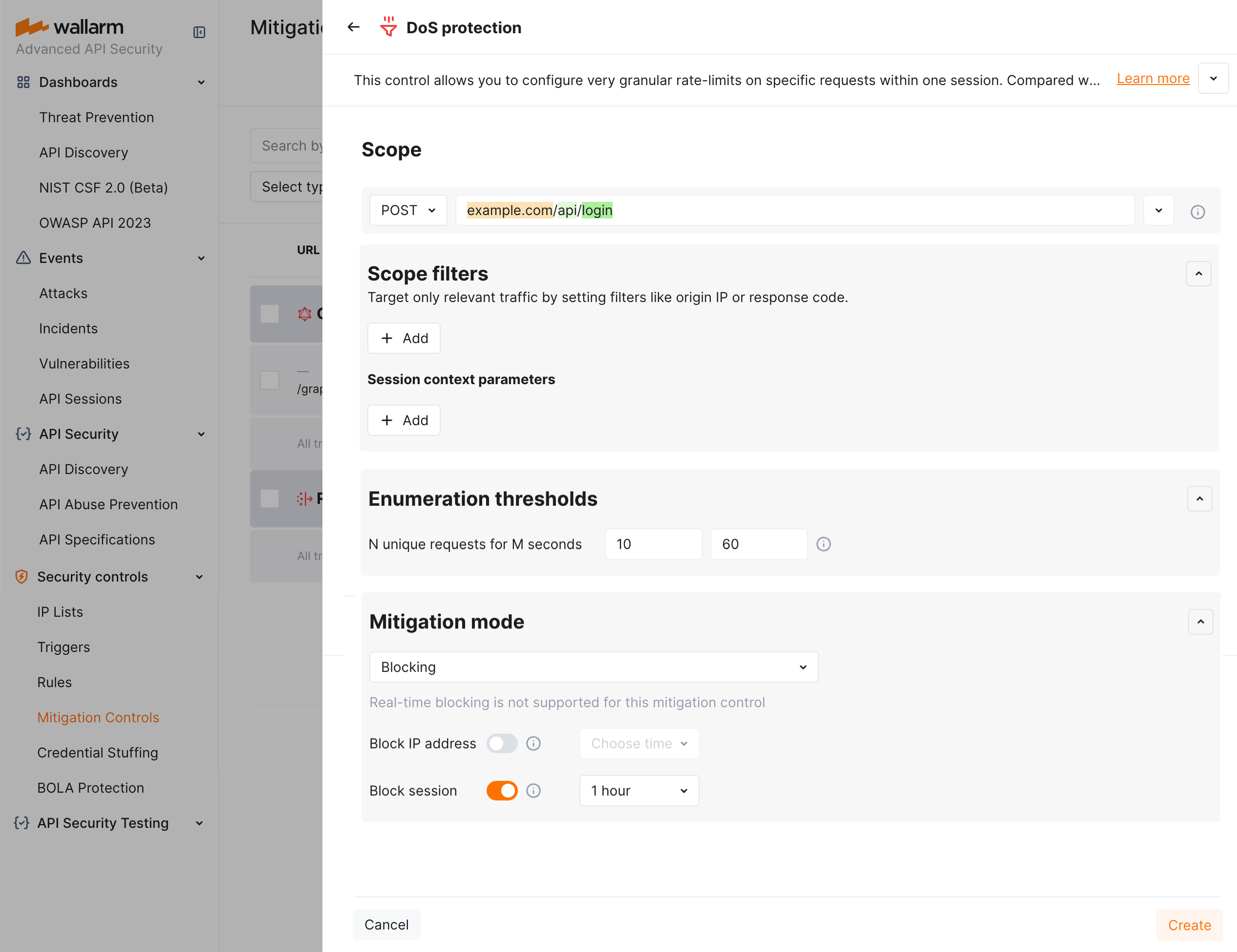 Wallarm provides the new DoS protection mitigation control to help prevent excessive traffic to your API.